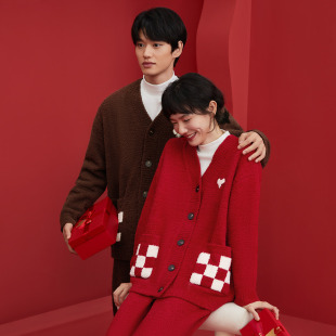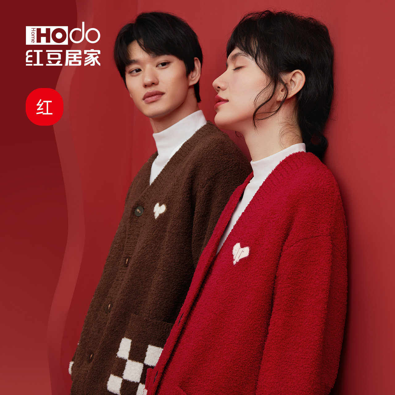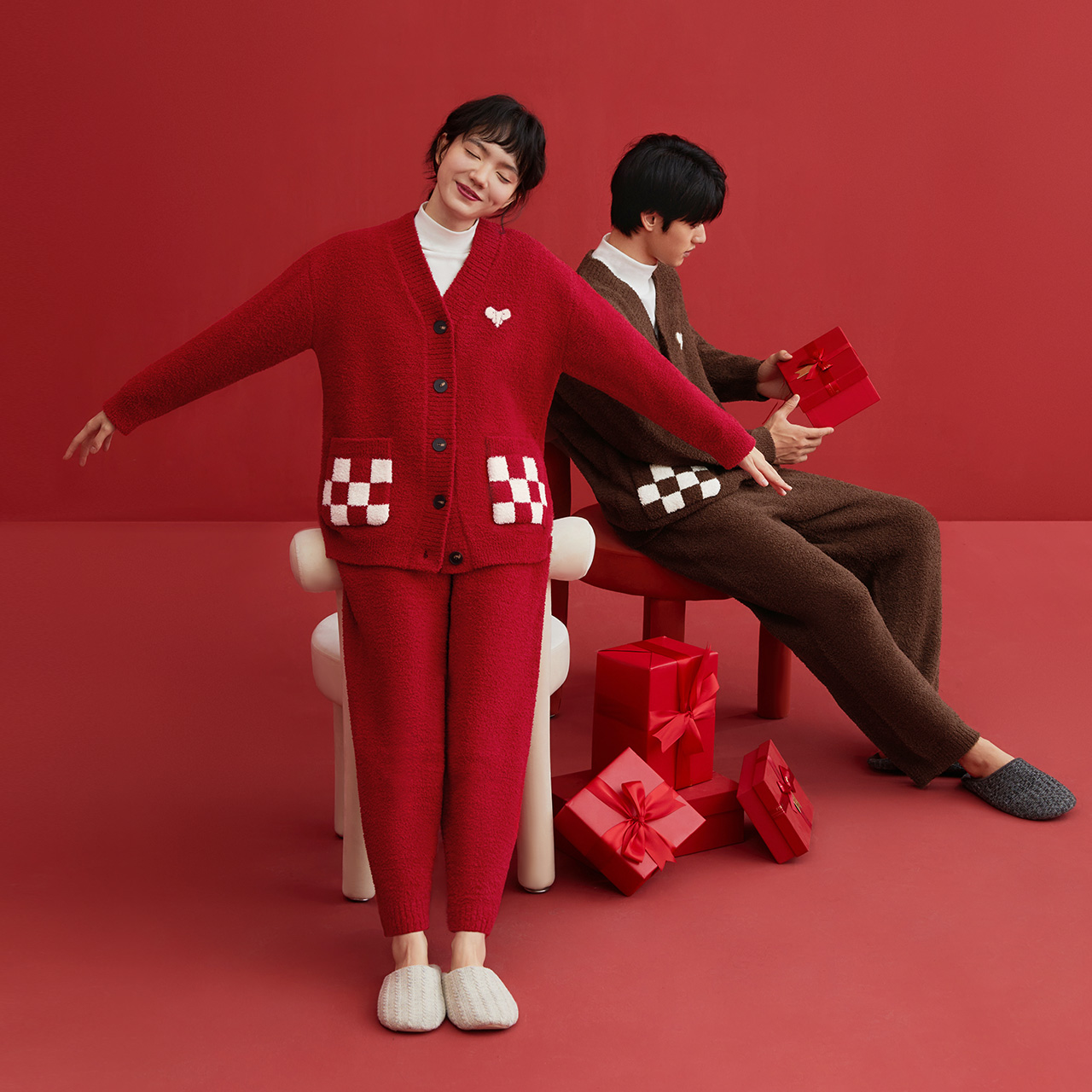 大红色冬 情侣睡衣女半边绒本命年男结婚新婚家居服套装 红豆红