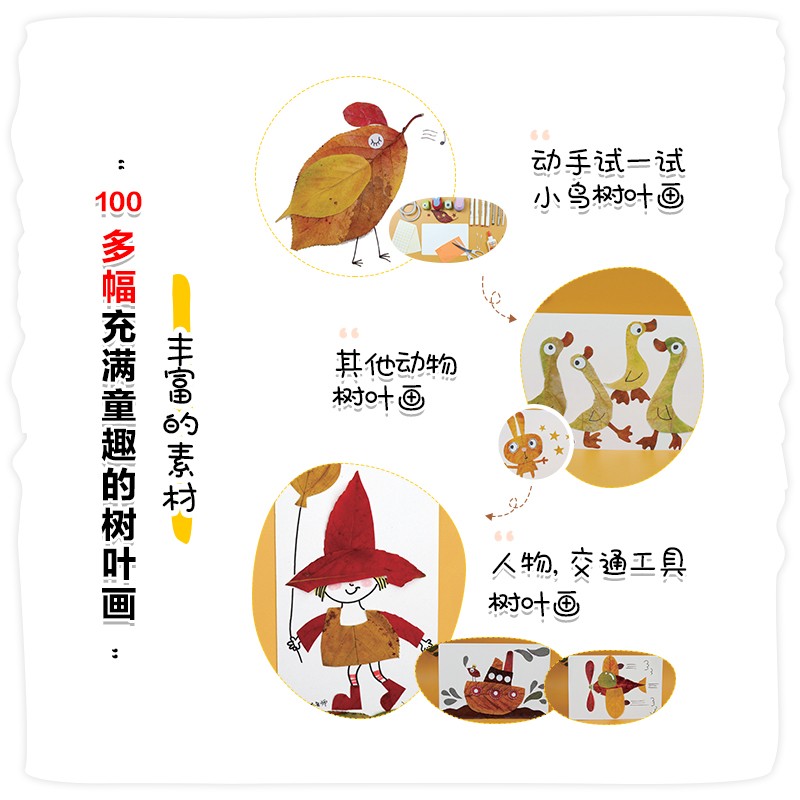 奇思妙想树叶画 一学就会 儿童创意植物手工100例 套装 儿童创意植物手工diy专注力美术作业 树叶画 2册 好玩 创意植物手工