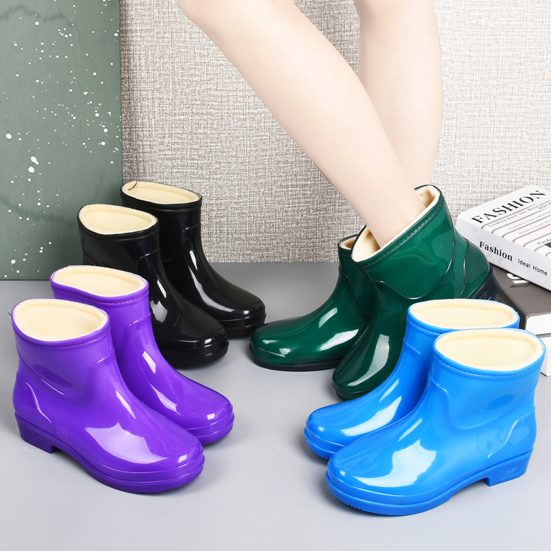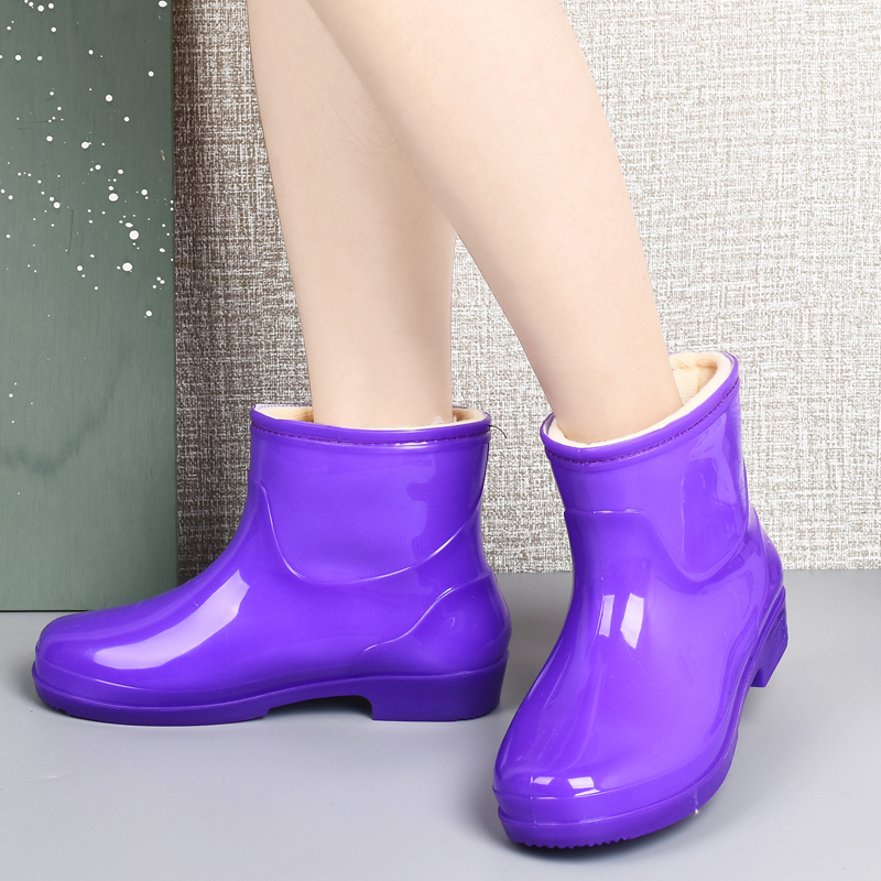 加绒保暖外穿防滑水靴厨房洗菜防水鞋 纯色女式 短筒胶鞋 41大码 雨鞋