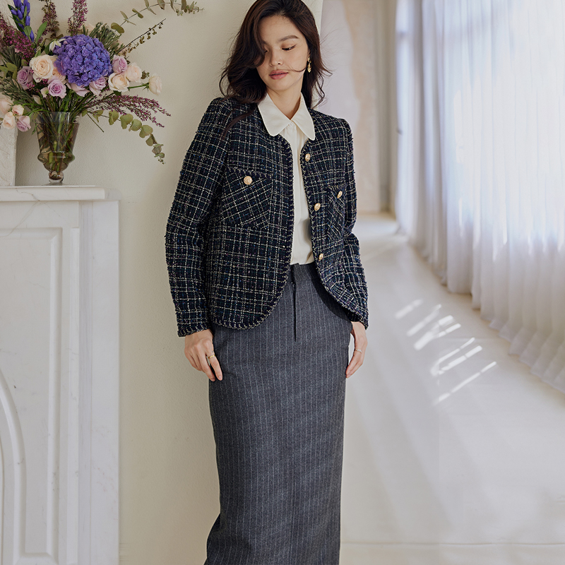 格子肌理感西服07488 新款 罗衣气质粗花呢小香风西装 外套2025冬季