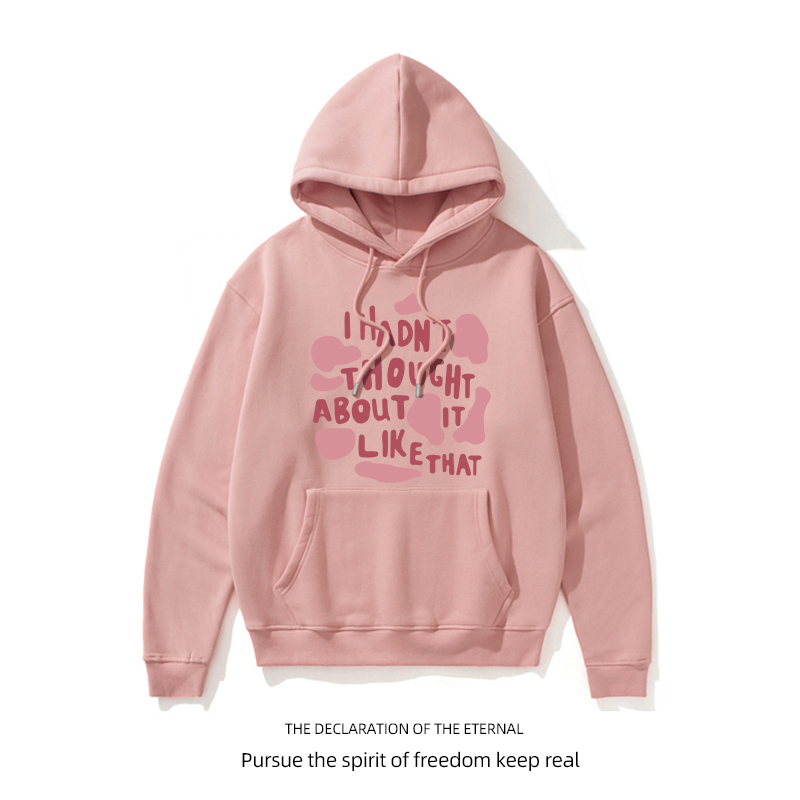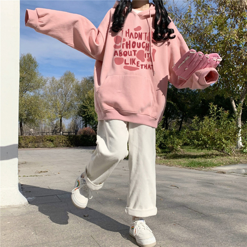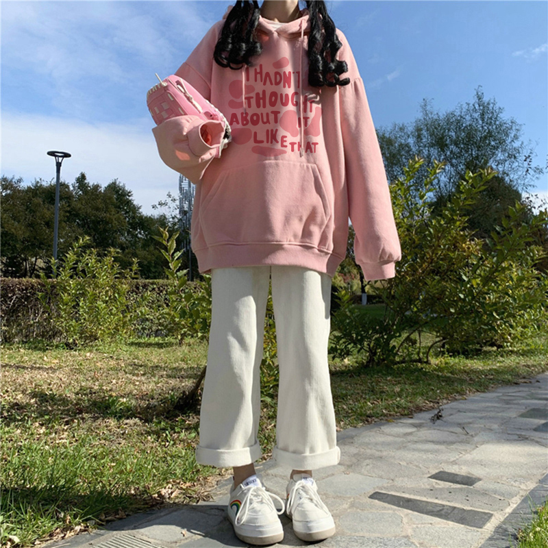 粉色连帽卫衣女加绒加厚秋冬宽松bf慵懒风大码 胖mm遮肚上衣藏肉潮