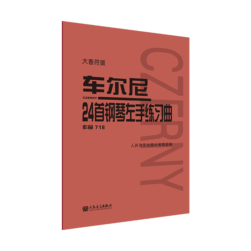 正版 作品718 人民音乐出版 社 技法钢琴练指法乐曲谱教程书籍 大音符版 人音红皮书钢琴初学入门教材 车尔尼24首钢琴左手练习曲