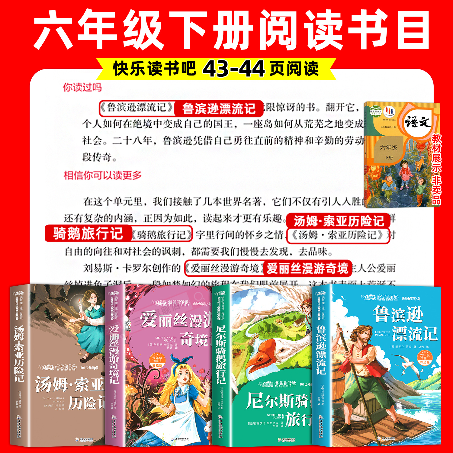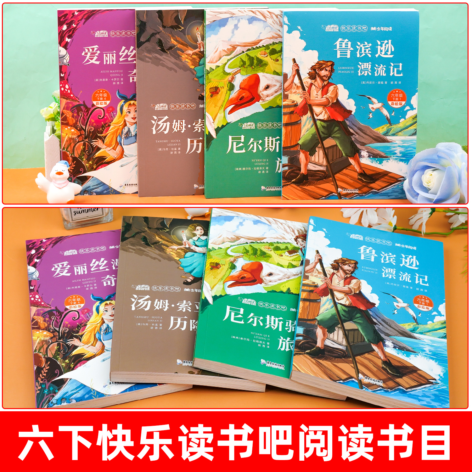 全套4册 完整爱丽丝漫游奇境汤姆索亚历险记骑鹅旅行记鲁滨孙小学生快乐读书吧阅读课外书籍 鲁滨逊漂流记六年级下册必读书原著正版