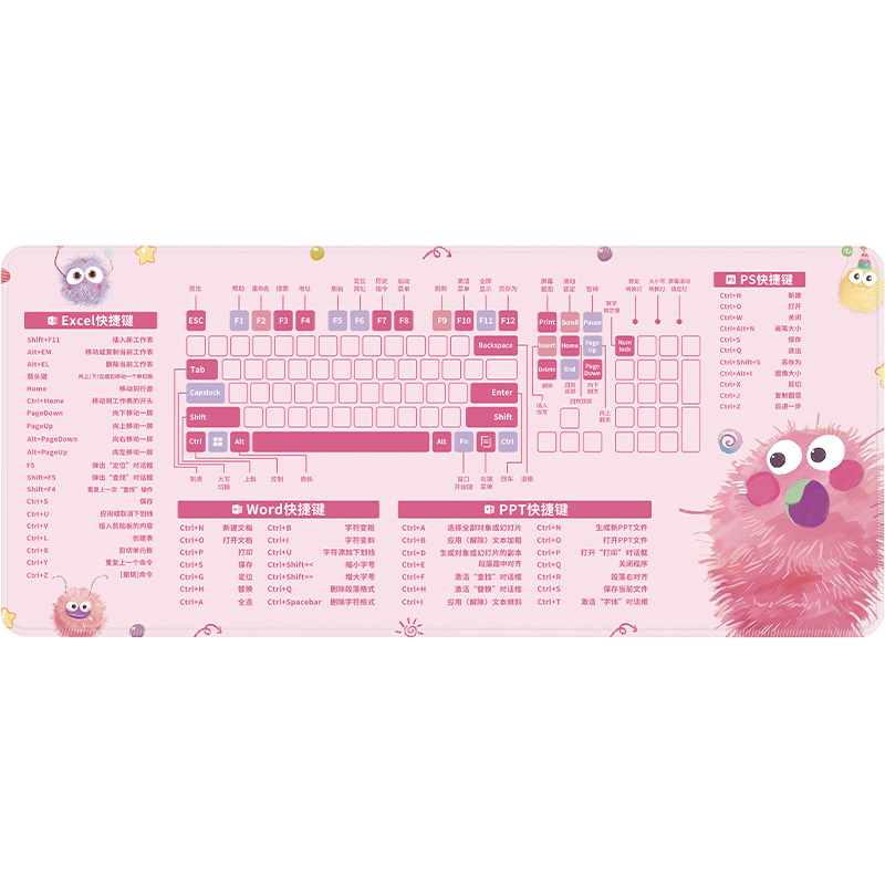 小怪兽快捷键大全鼠标垫超大女生办公电脑桌垫定制家用宿舍键盘垫