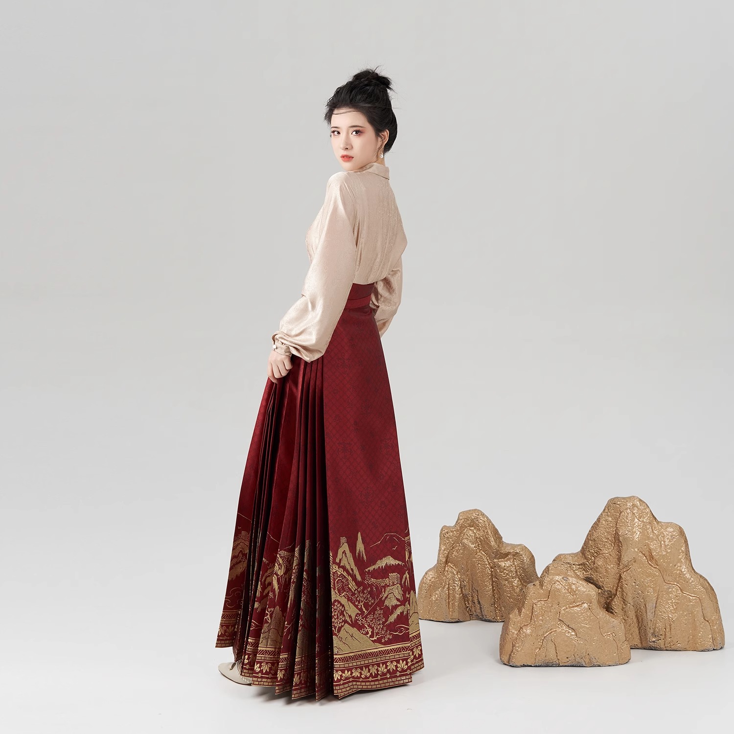 万里织造司原创明制汉服过年马面裙女半身裙敬酒服订婚服秋冬套装