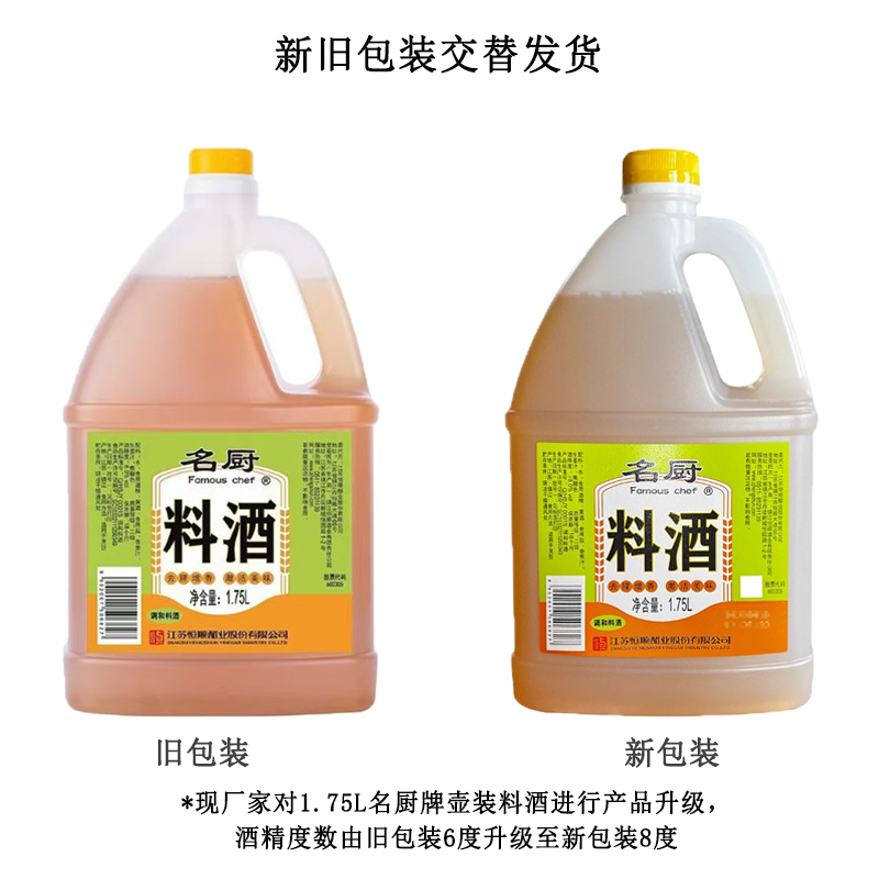 恒顺名厨料酒1.75L去腥增香烹饪调味酒优质黄酒家用日常烹饪醇香