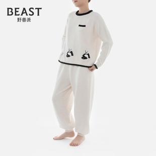 tbh野兽派家居都市野兽黑豹法兰绒家居服套装 可外穿情侣睡衣冬