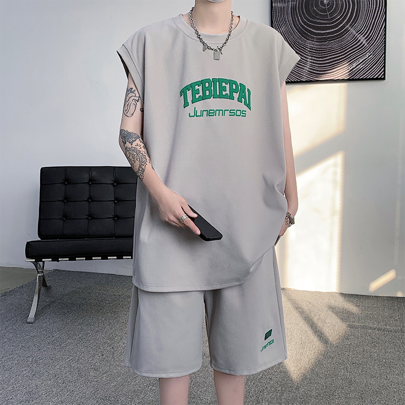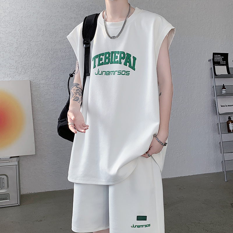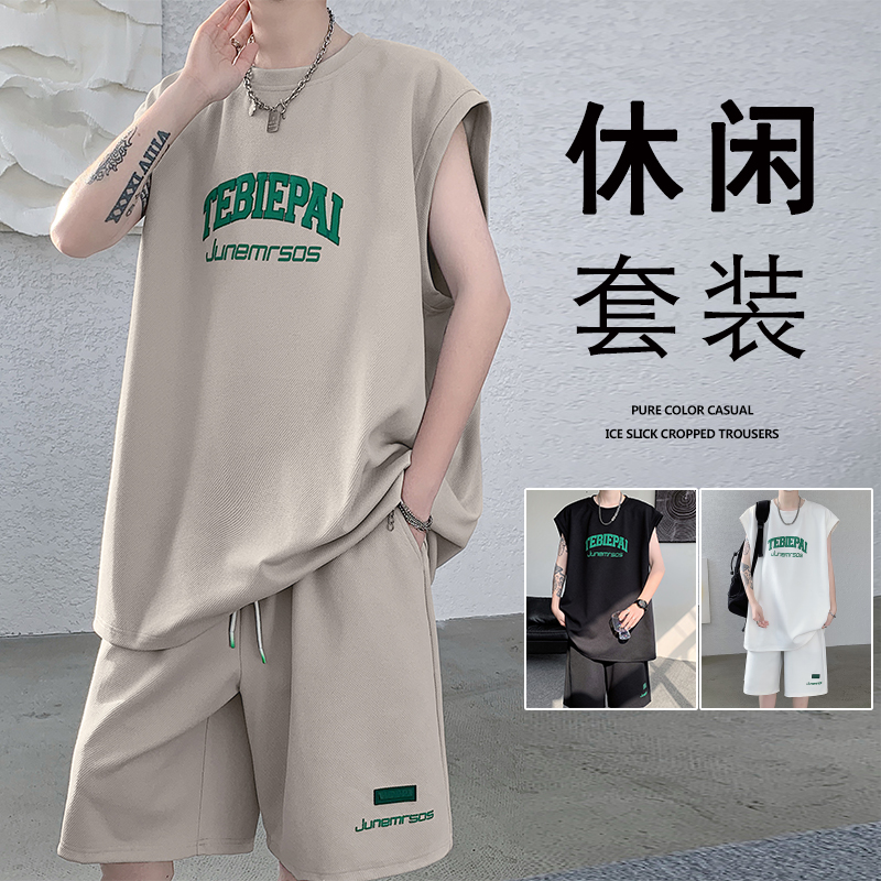 薄款 男夏季 坎肩篮球休闲运动短袖 短裤 无袖 搭配一套装 背心t恤套装