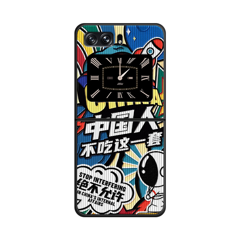适用于摩托罗拉Razr2022手机壳竖条纹折叠屏Razr2020全包防摔男贴皮2023新款 潮牌卡通高级感宇航中国保护套
