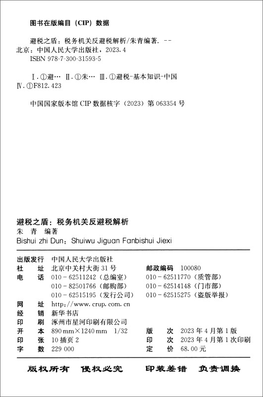 中国人民大学出版 朱青 社9787300315935 税务机关反避税解析 避税之盾