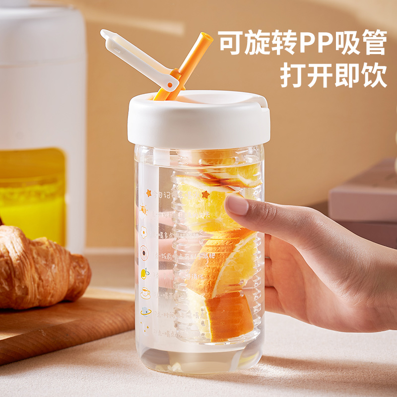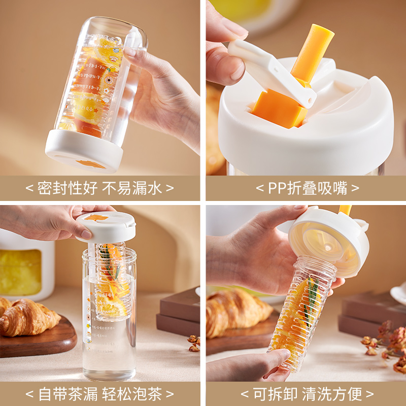 玻璃水杯女生2023新款 吸管杯子家用办公室茶水分离杯泡果茶花茶杯