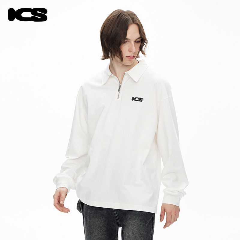 CleanFit长袖 ics 男女美式 polo衫 T恤 iconslab字母logo半拉链长袖
