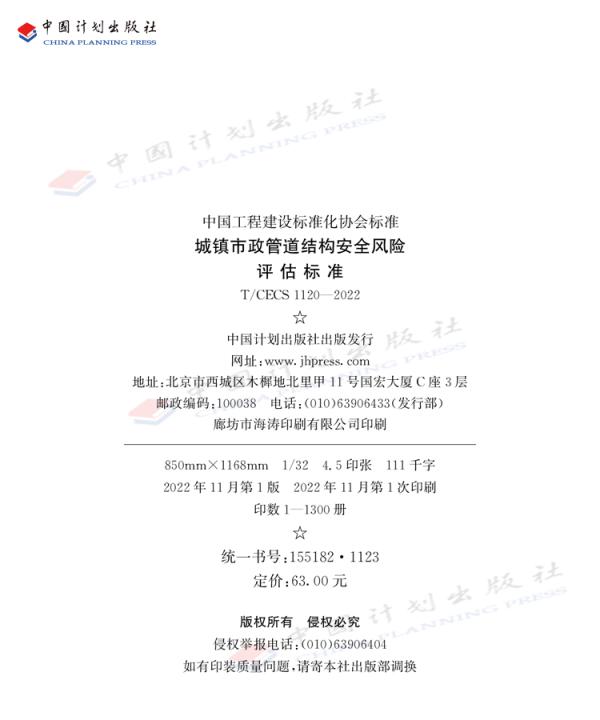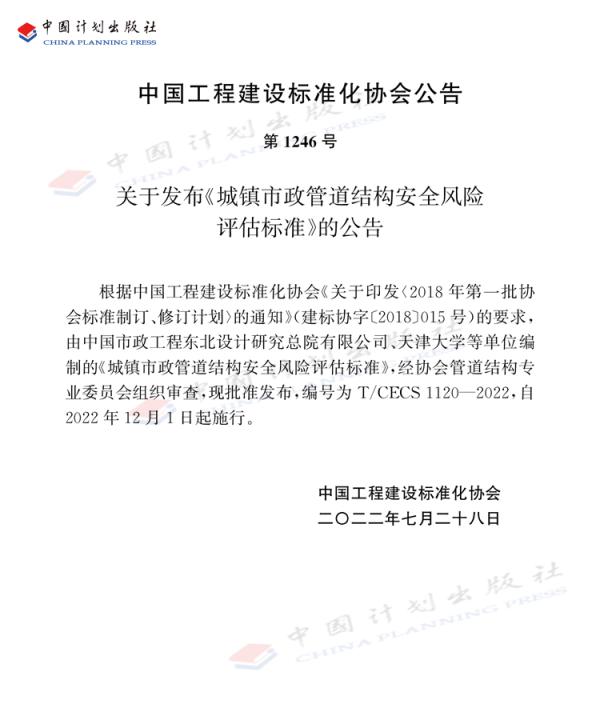 2022 1120 城镇市政管道结构安全风险评估标准 CECS