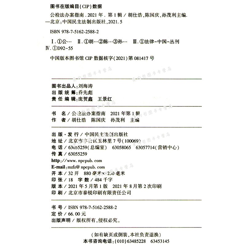 陈国庆 胡仕浩 孙茂利主编 中国民主法制出版 清库存 公检法办案指南 社 2021年第1辑