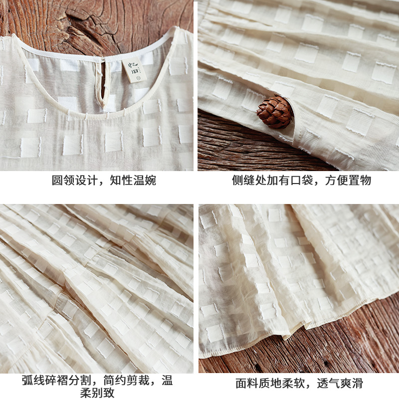 灯笼短袖 夏季 连衣裙女碎褶长裙天丝格子减龄宽松 柔光氛围 5折