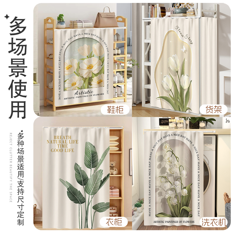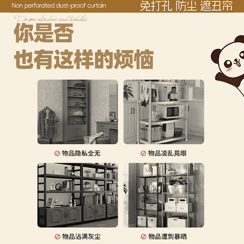 柜子遮挡帘衣柜门帘防尘帘免打孔滑轨道置物架橱柜帘装 饰美观纱帘