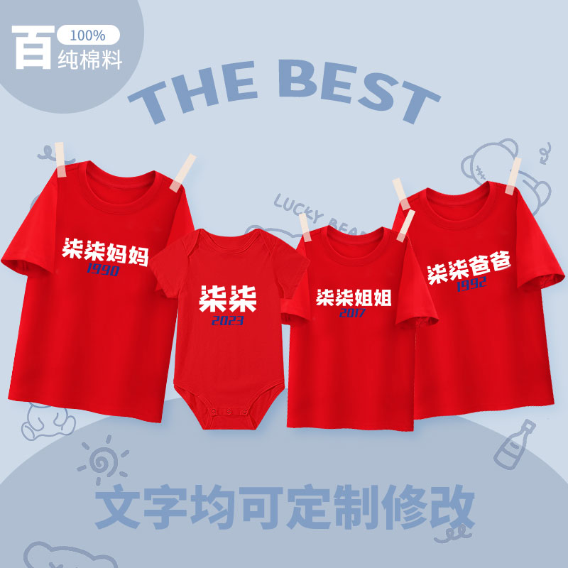 文化衫 出生年份名字称呼diy短袖 T恤棉婴儿 母女亲子装 定制全家装