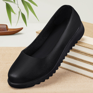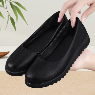 餐厅软底久站不累工作鞋 黑色皮鞋 女防滑厨师专用肯德基夏季 厨房鞋