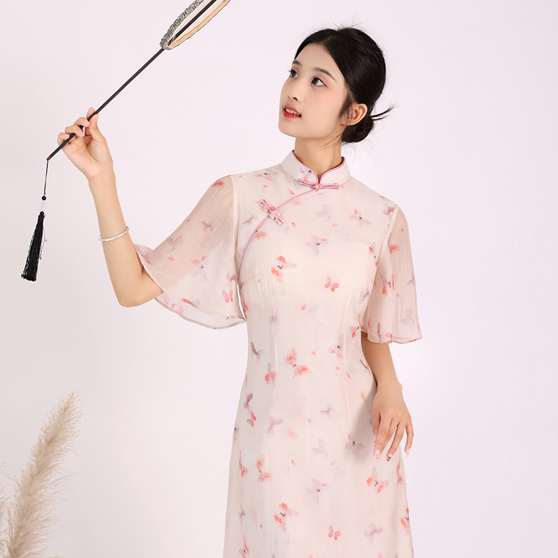 新中式 新款 改良设计蝴蝶印花气质旗袍裙 爱依服连衣裙2025秋季 IEF