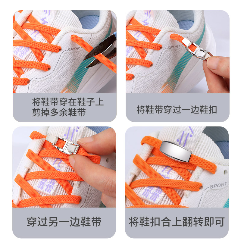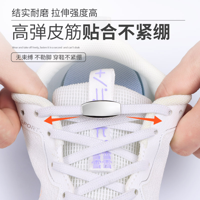 女款 扣固定器锁扣绳男士 白色儿童卡扣 带弹力扁平松紧鞋 懒人免系鞋