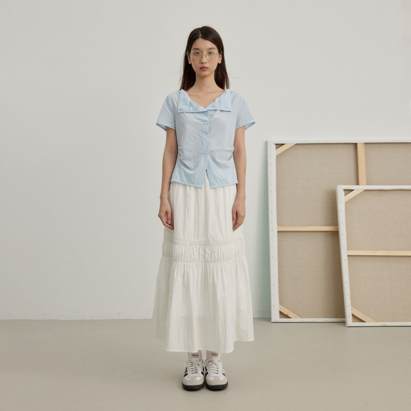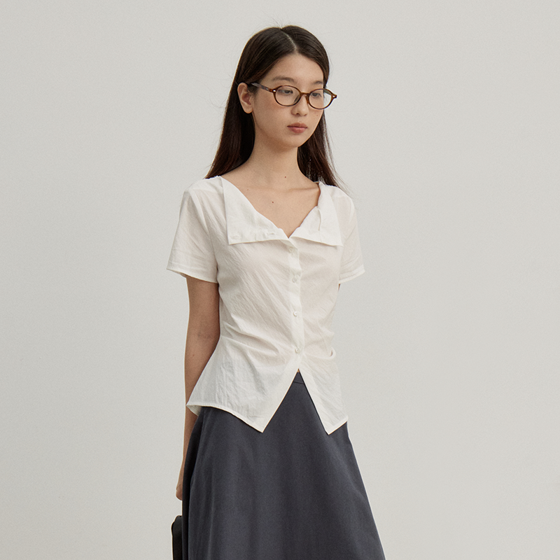 莱赛尔荡领短袖 轻薄凉爽绝美小衫 衬衫 修身 衬衣 夏季 omont蛋挞家