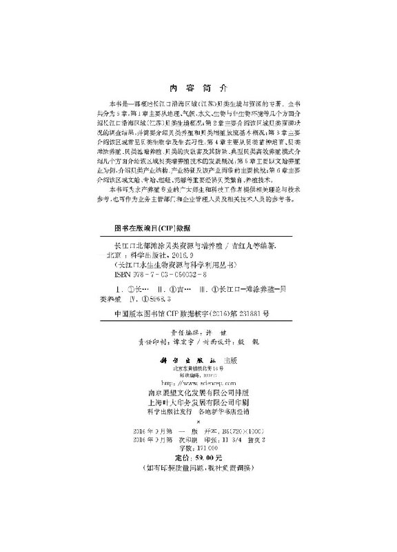 水产 9787030500328书籍KX 吉红九 社 农业 科学出版 长江口北部滩涂贝类资源与增养殖 等 渔业 林业 书