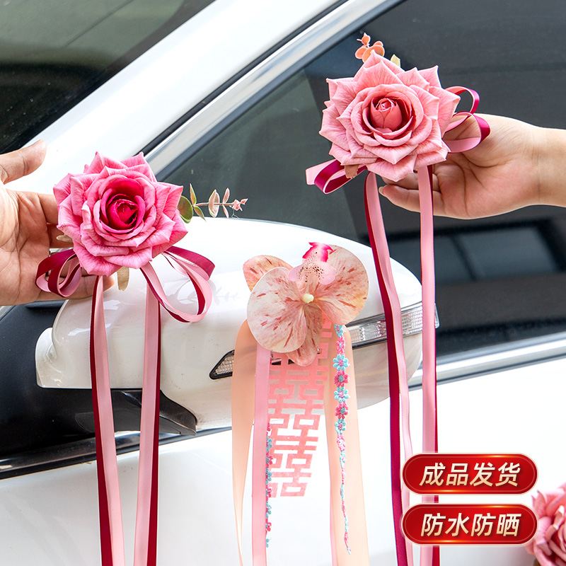 婚车拉花装 饰车队结婚车花仿真花彩带彩条汽车贴喜字婚庆用品大全