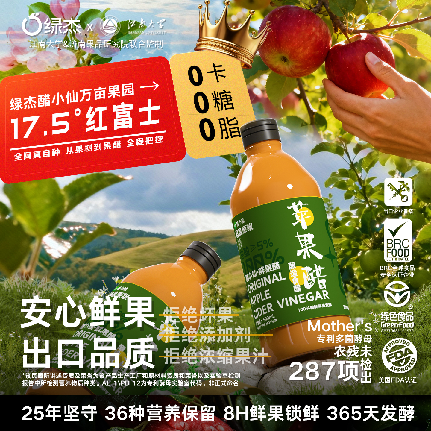 醋小仙原浆苹果醋无糖型0卡脂纯天然NFC发酵燃生酮健身零食专利款