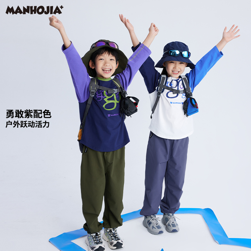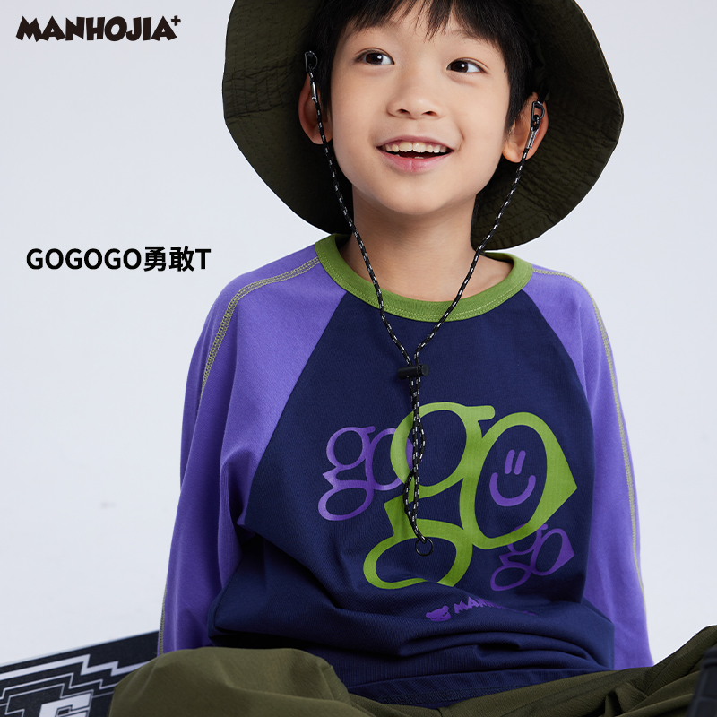户外长袖 漫画家 儿童T恤轻薄全棉透气插肩袖 男童女童T恤 GOGO