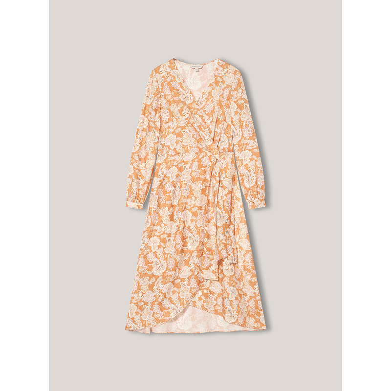 Goodland美地秋季 朱伊碎花茶歇交叠V领连衣裙 法式