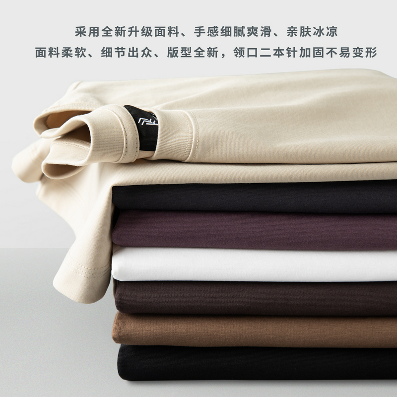 纯色休闲丝光体恤男士 上衣夏季 T恤男潮圆领宽松半袖 液氮纯色短袖