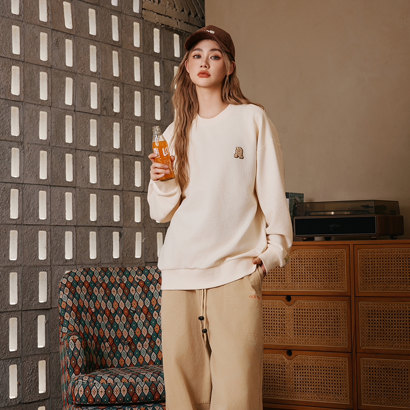 美式 上衣 复古碎花贴布刺绣无帽卫衣女春秋冬宽松chic慵懒港风长袖