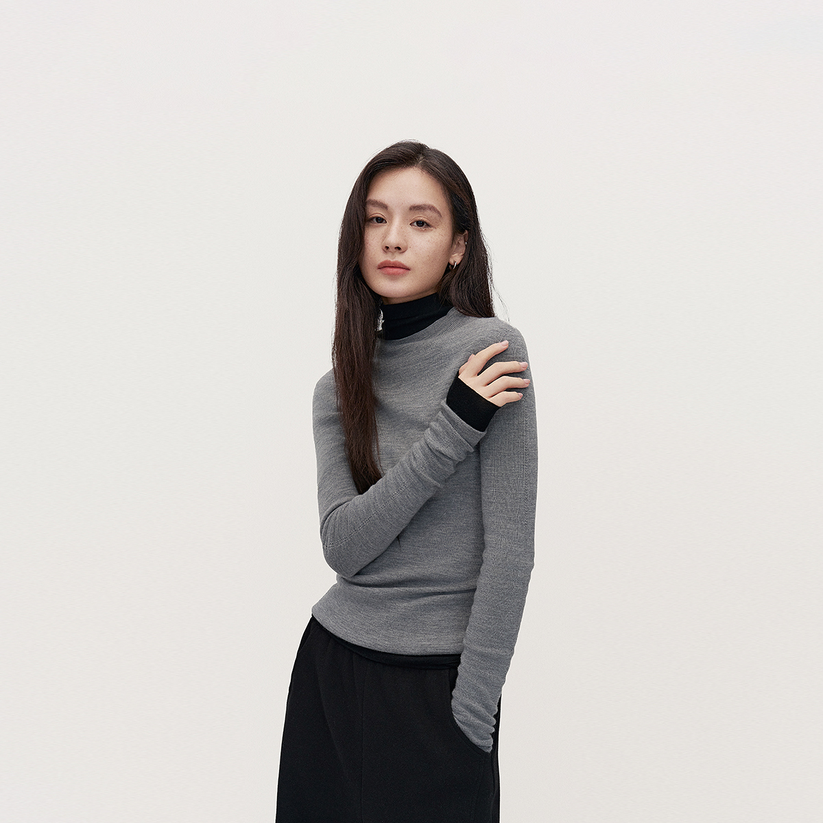 OCHIRLY欧时力 澳大利亚100%美丽诺羊毛半高领毛衣女高级秋冬新品