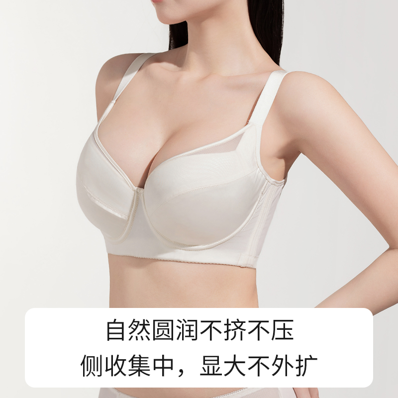 润微提拉内衣女大胸显小无痕防下垂收副乳胸罩爆款 隐形粉底液文胸