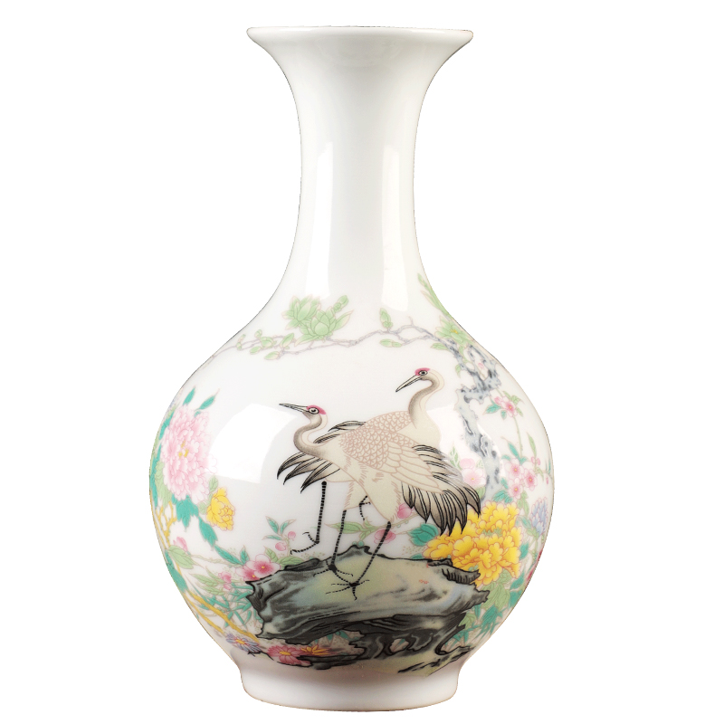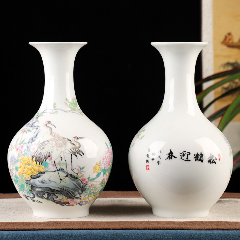 景德镇陶瓷器粉彩花瓶插花中式 饰工艺品摆件 客厅酒柜办公室家居装