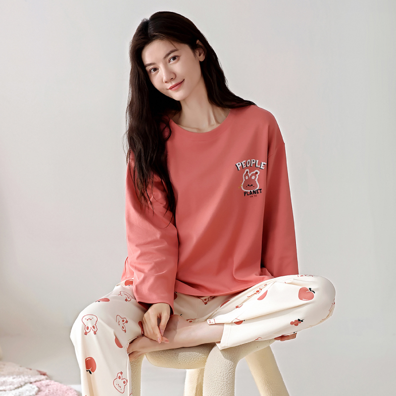 秋季 套装 新款 套头可爱全棉女款 纯棉长袖 芬腾睡衣女士家居服春秋款