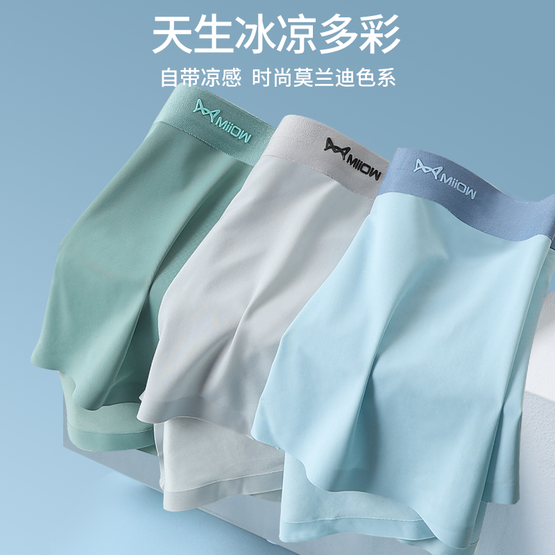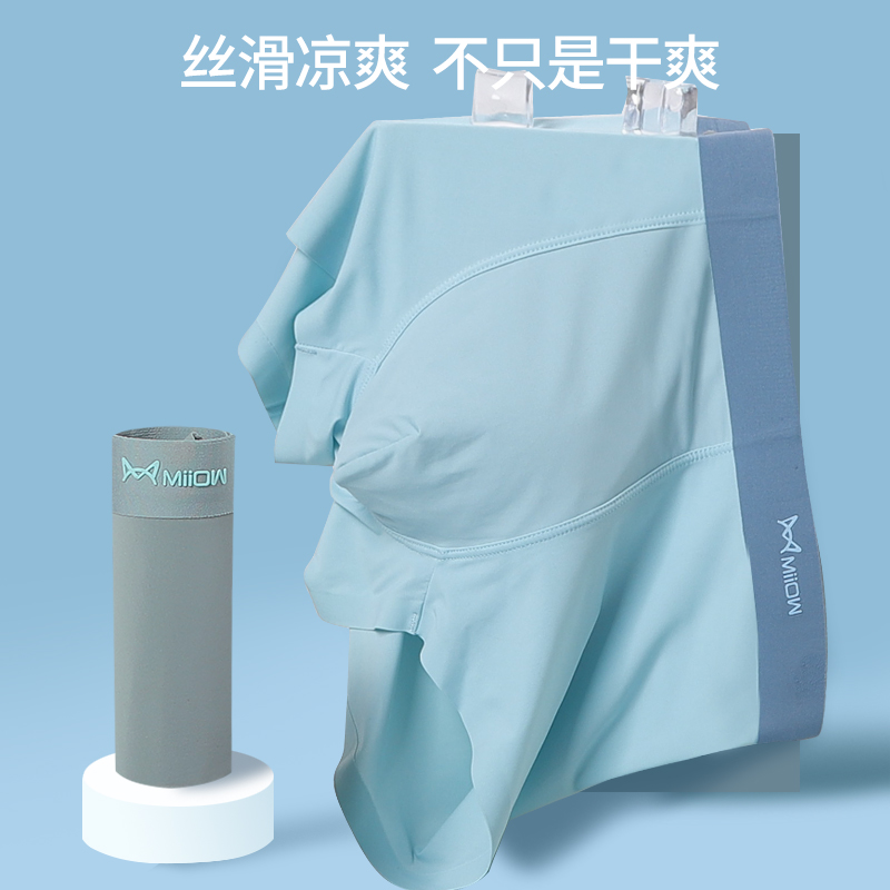 薄款 男生夏季 无痕平角裤 青年大码 头 猫人男士 宽松四角短裤 冰丝内裤
