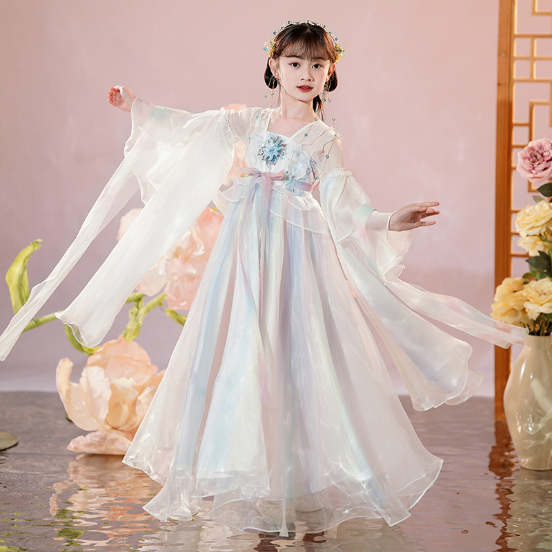 裙子新款 中秋节女童汉服中国风儿童唐装 小女孩超仙古风连衣裙夏季