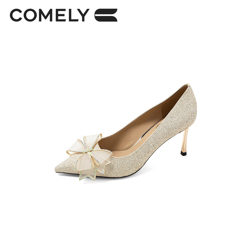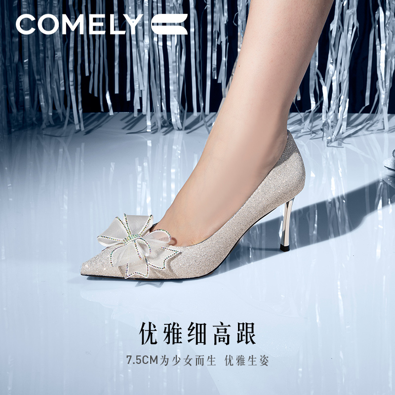 女鞋 康莉单鞋 蝴蝶结细跟晚宴礼服高跟鞋 商场同款 女金色春秋新款