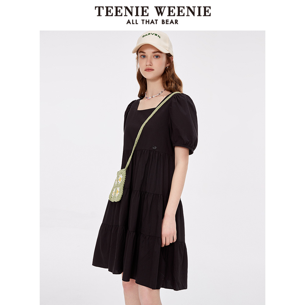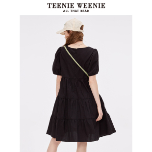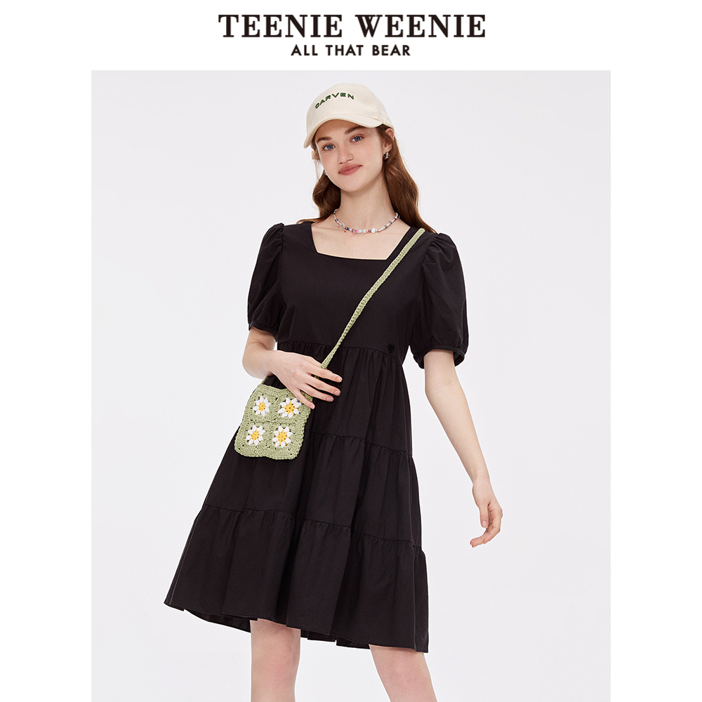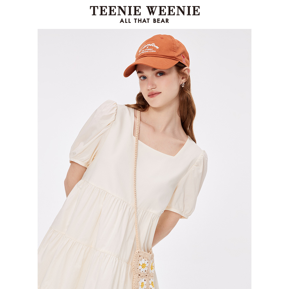 TeenieWeenie小熊奥莱浪漫法式 夏 方领公主连衣裙天丝气质女装