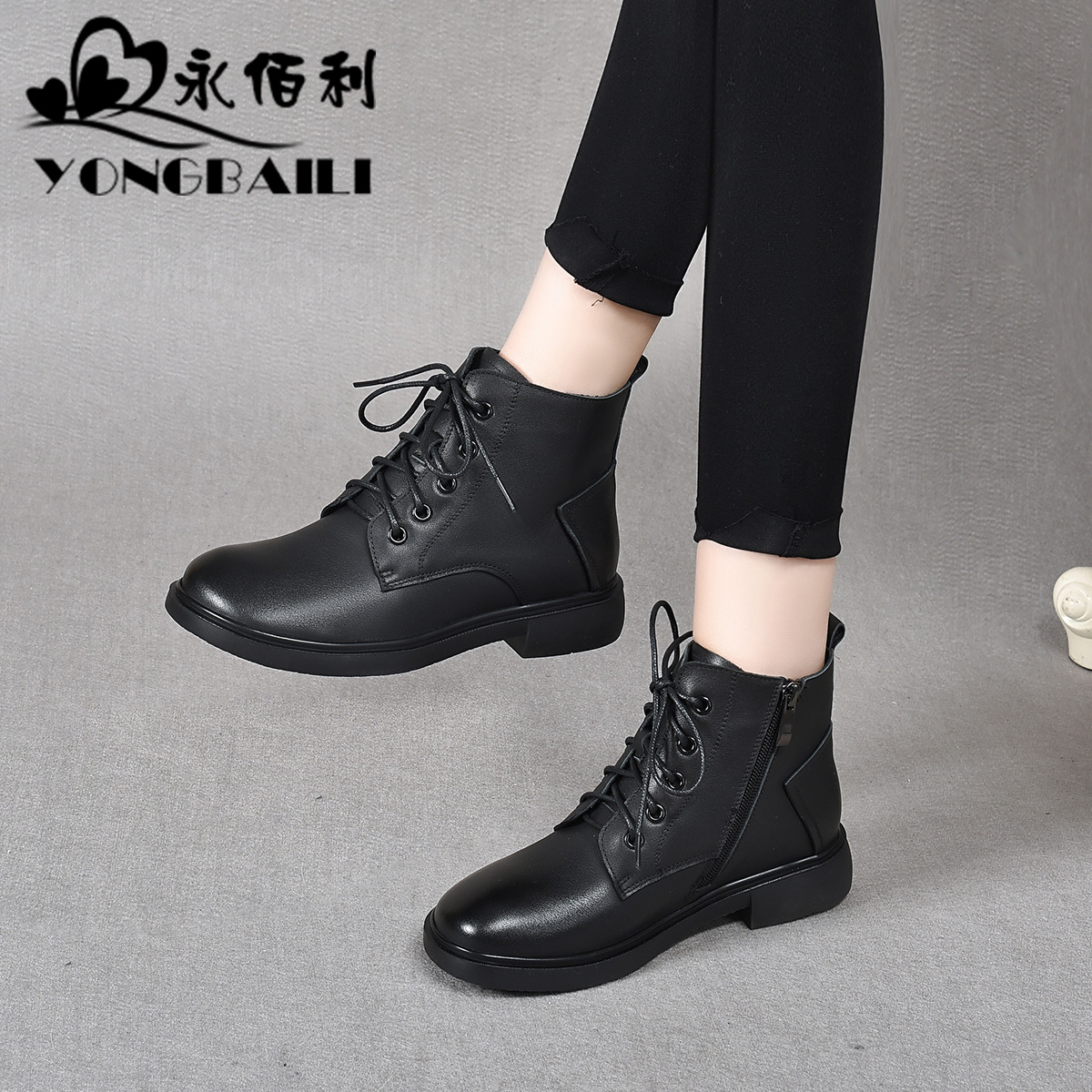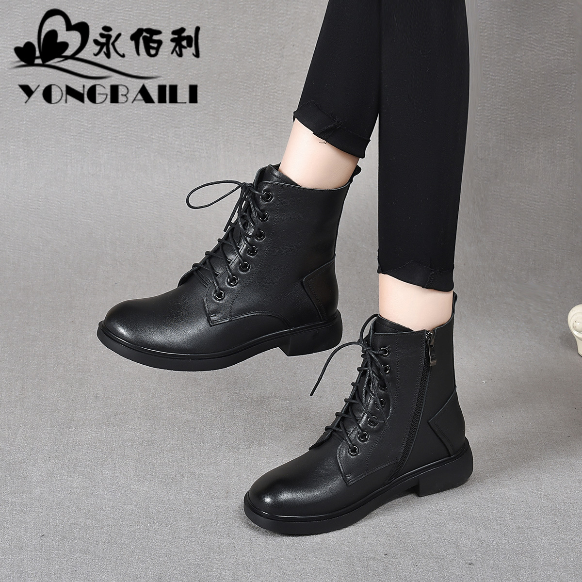 黑色增高靴子女时尚 新款 休闲皮面短靴 2025秋季 环球厚底马丁靴女款