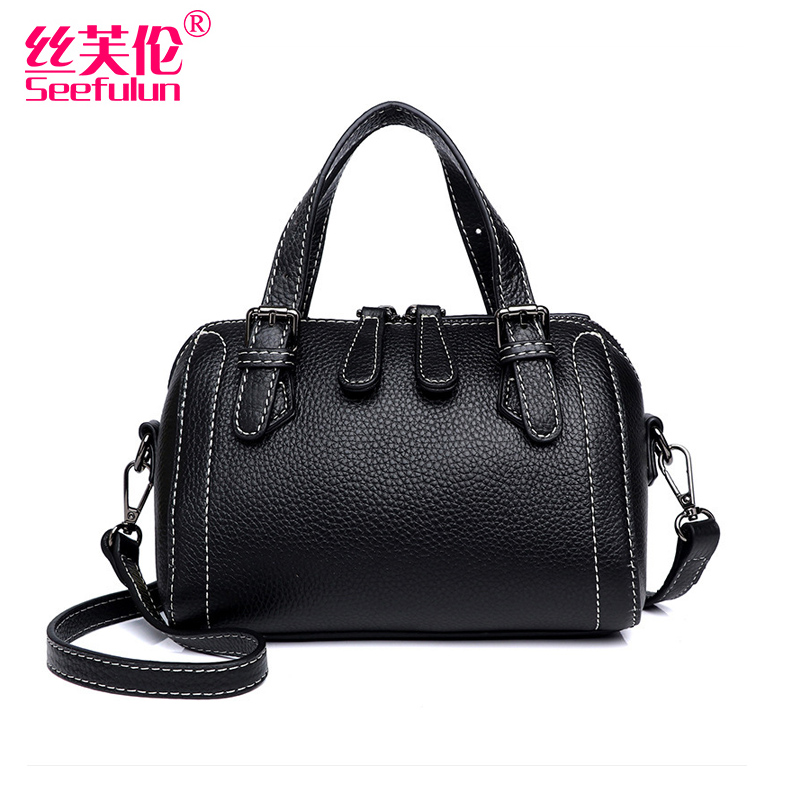 真皮单肩斜挎波士顿包女百搭2025新款 软牛皮手提小包包休闲女包潮