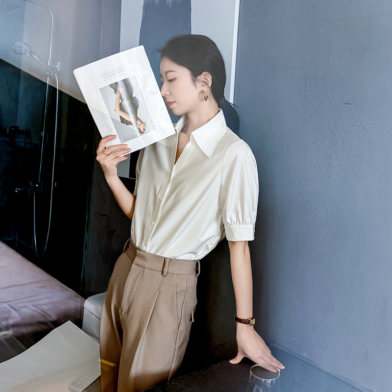 修身 秋冬短款 长袖 女新款 上衣蓝色衬衣女 磨毛收腰衬衫 娅丽达法式