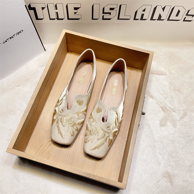 女2025年夏季 一脚蹬女鞋 新款 方头浅口单鞋 子 法式 热风银色平底单鞋