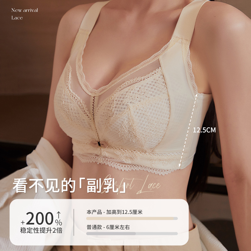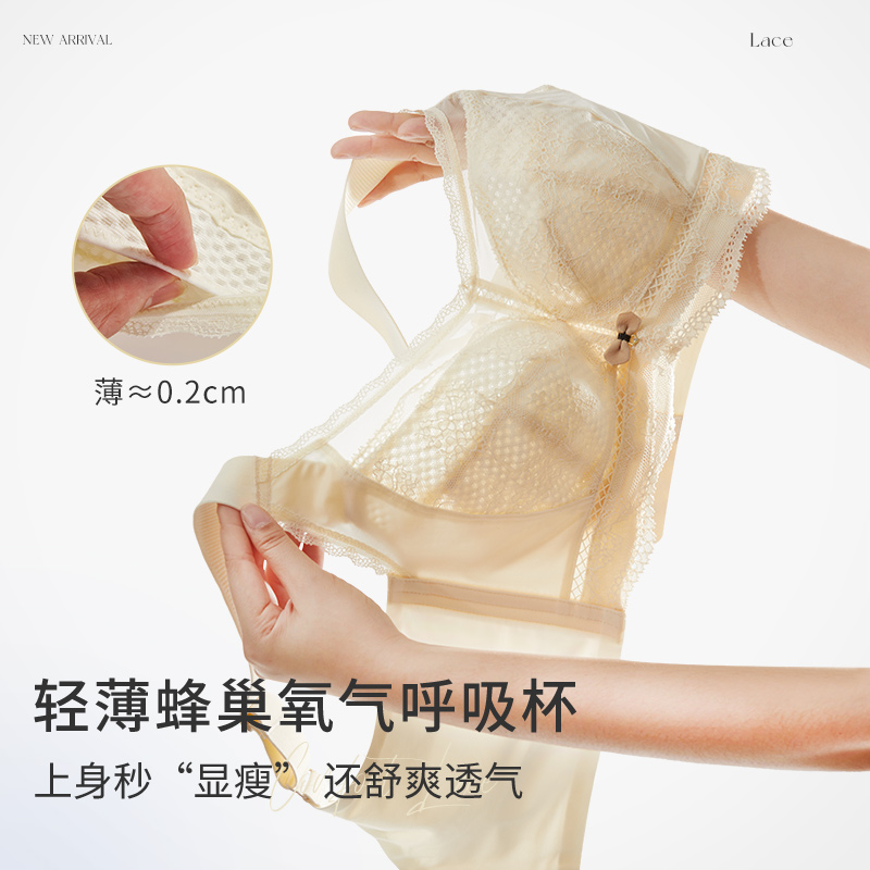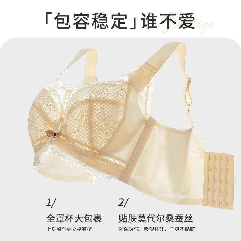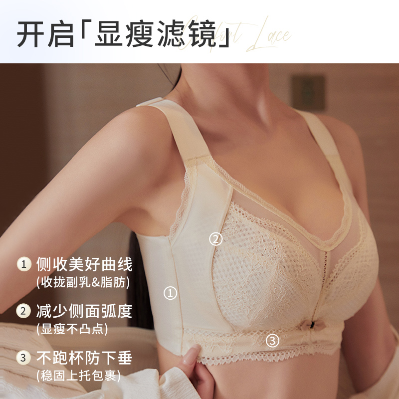 安娜蜜语大胸显小蕾丝内衣性感软钢圈文胸上托防下垂大码 超薄透气