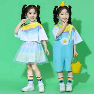 表演服 儿童啦啦队演出服小学生合唱背带裤 小学生运动会开幕式 服装