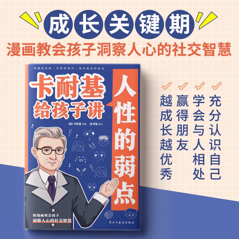 卡耐基给孩子讲人性 秘诀用漫画教会孩子洞察人心 弱点卡耐基沟通 技巧快乐成长 社交智慧少儿读物1分钟漫画书Z 法则交际 正版