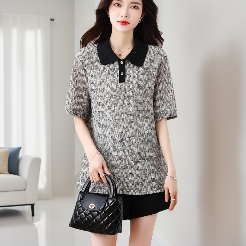 t恤正肩Polo衫 胖MM宽松遮肚子小衫 女夏季 大码 2025新款 肌理感短袖