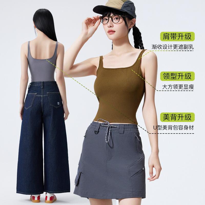 西装 修身 内搭外穿螺纹上衣 夏季 猫人方领吊带背心女带胸垫2025新款