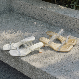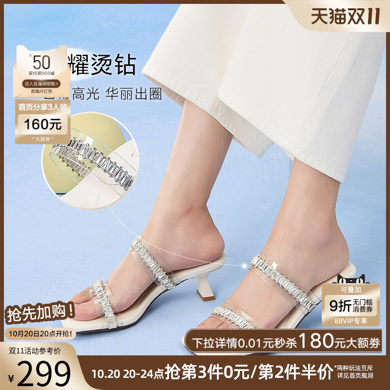 气质一字拖细高跟外穿女拖鞋 时尚 B5252BT5 商场新款 百思图2025夏季